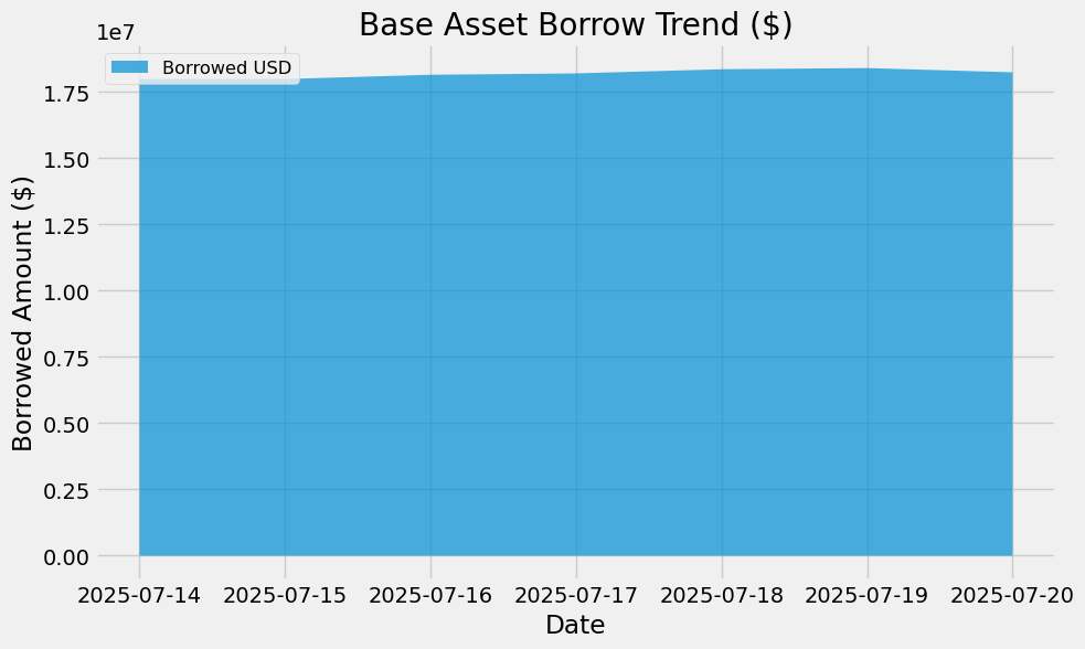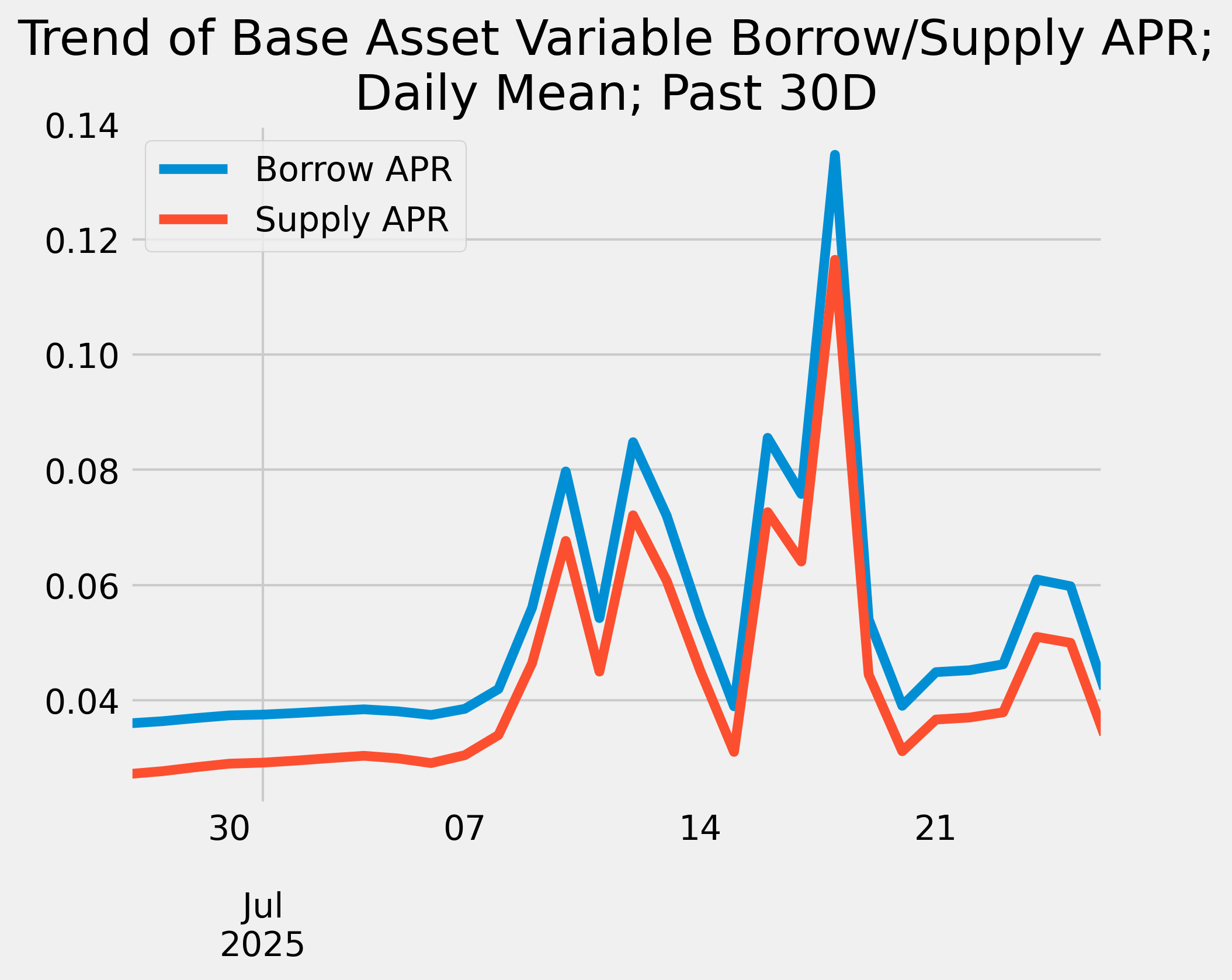 This graph shows the utilization (borrow / supply) of the base asset over the past week.