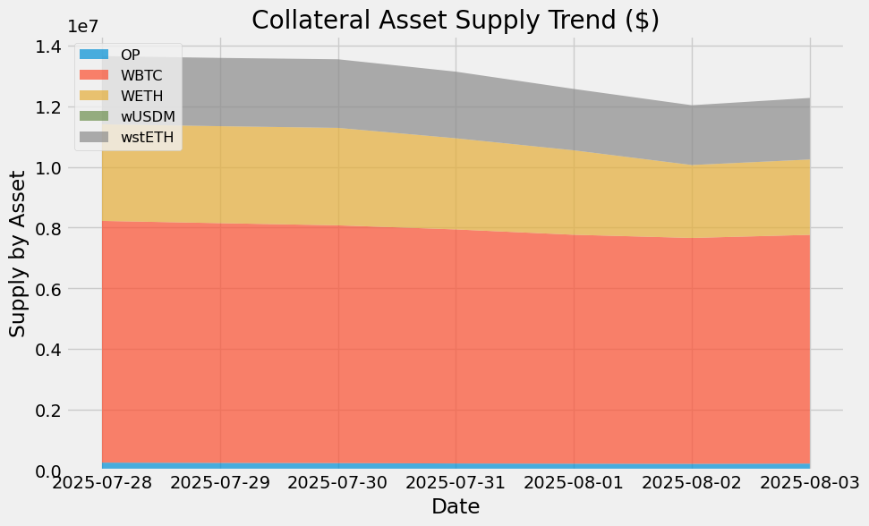 This graph shows the supply cap usage (supply / supply cap) of all collateral assets over the past week.