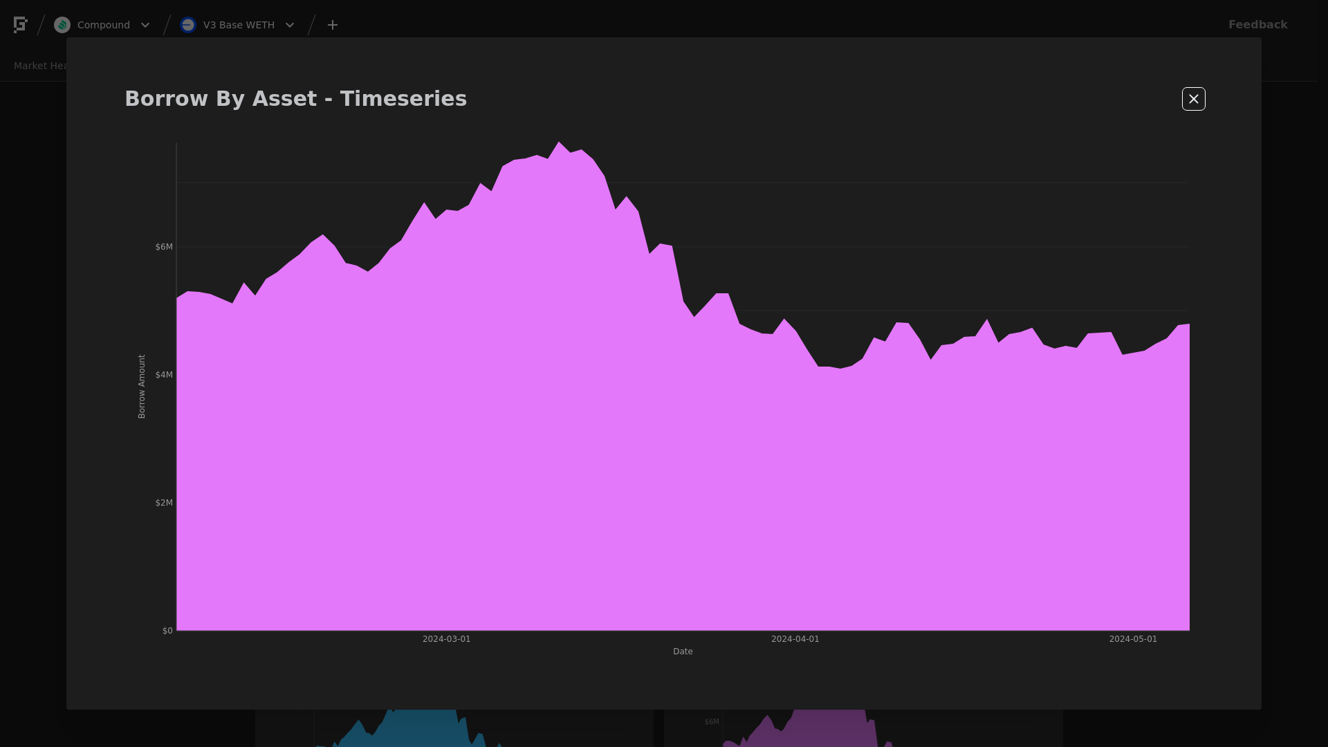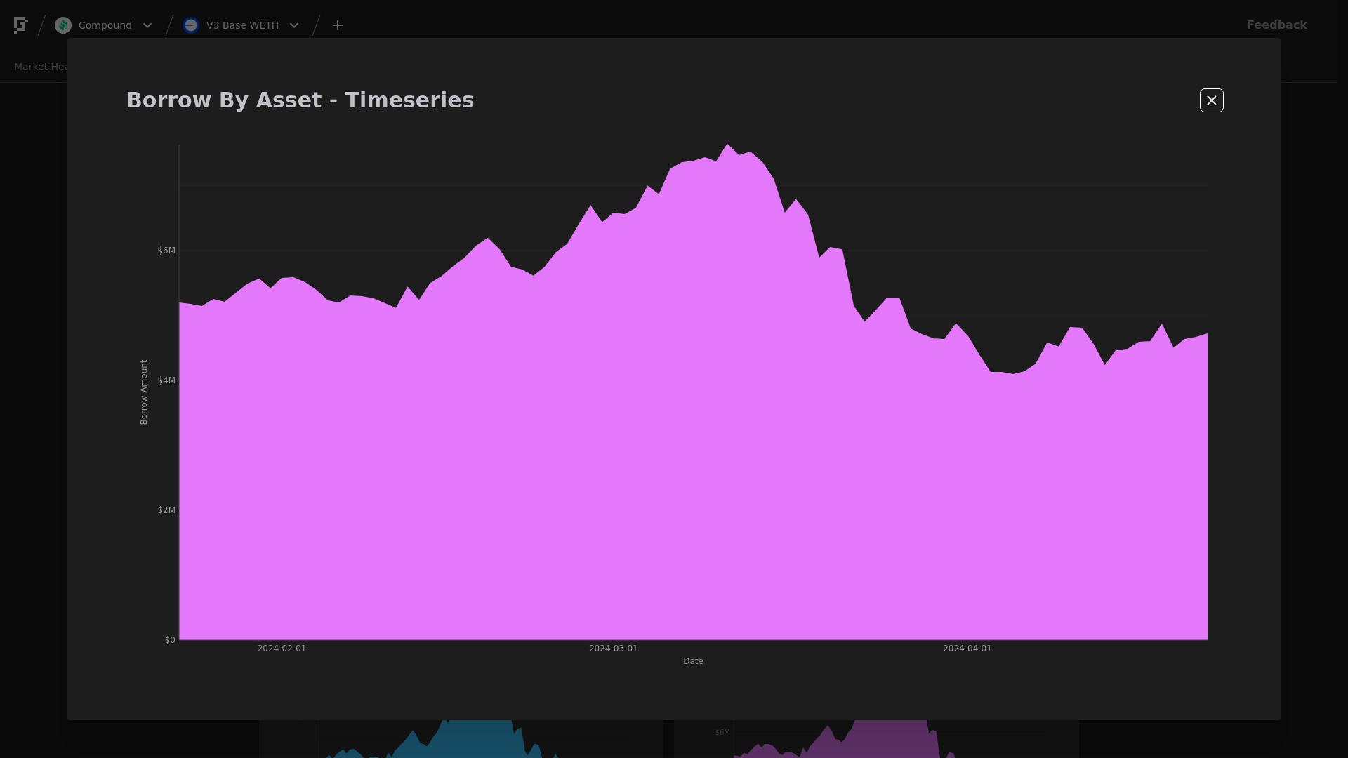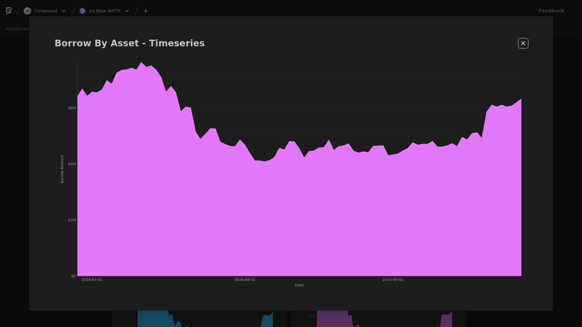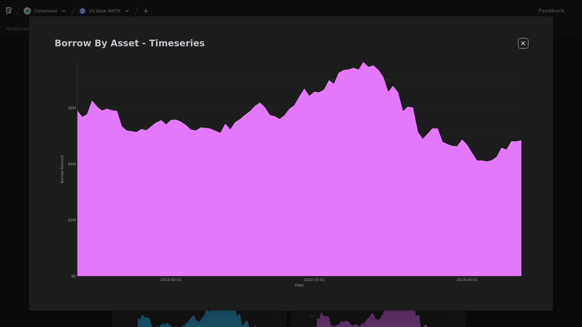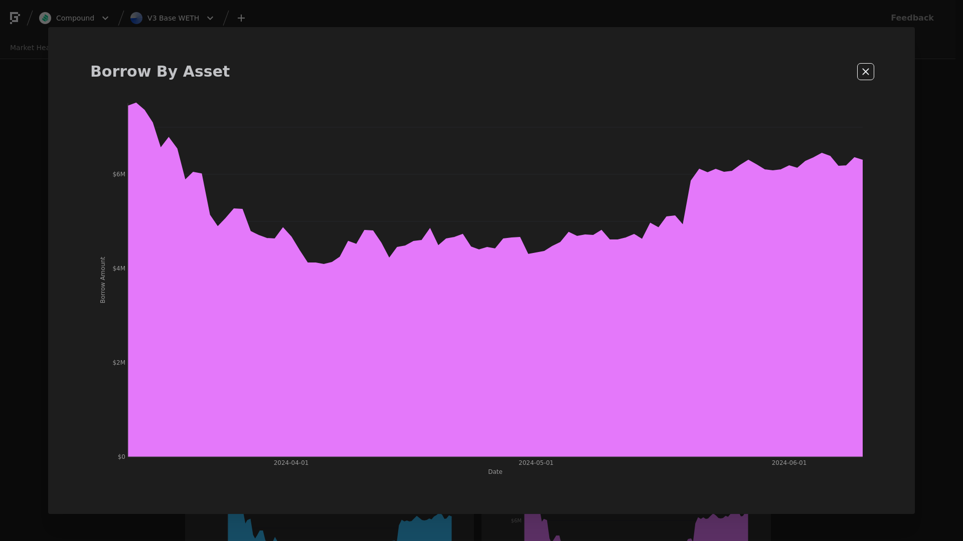 WETH Borrows increased 3.87%, from $6.11M to $6.35M.