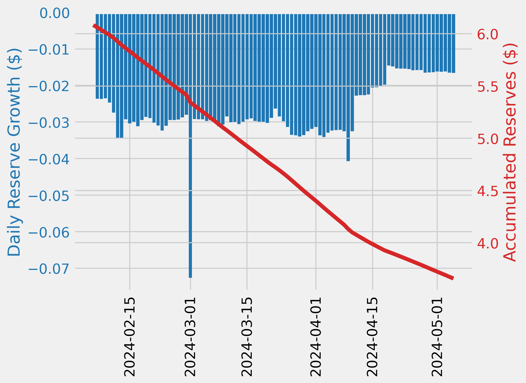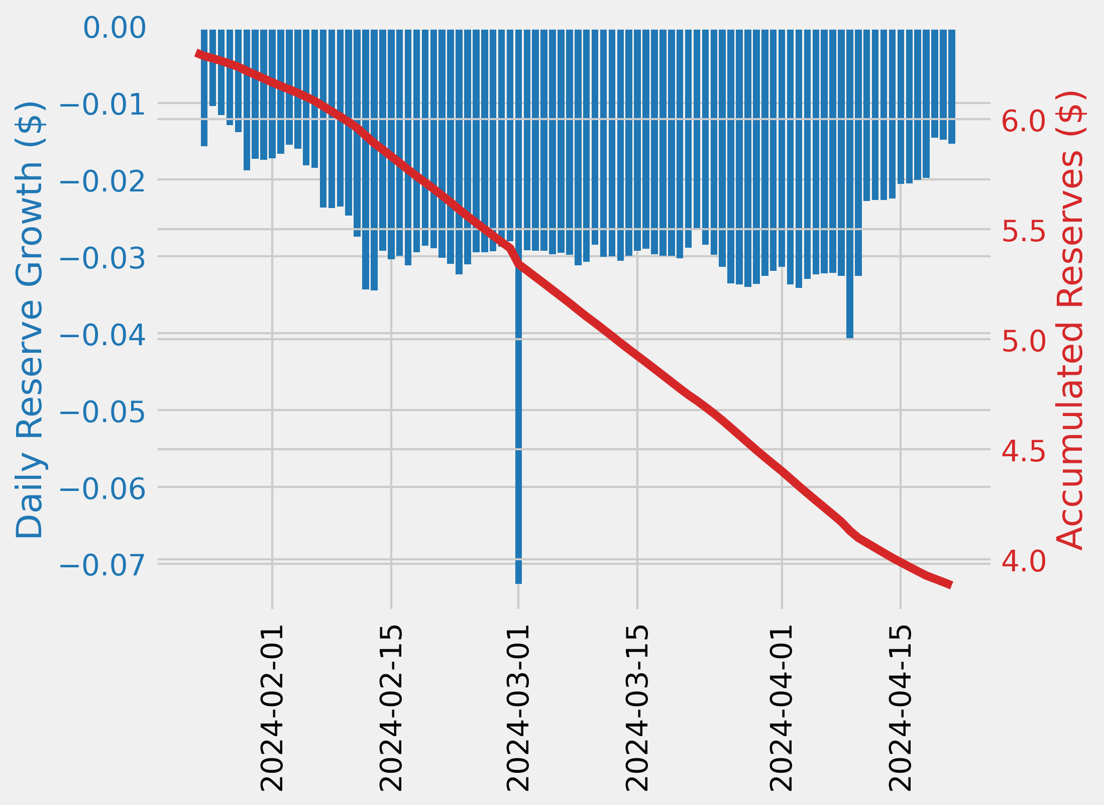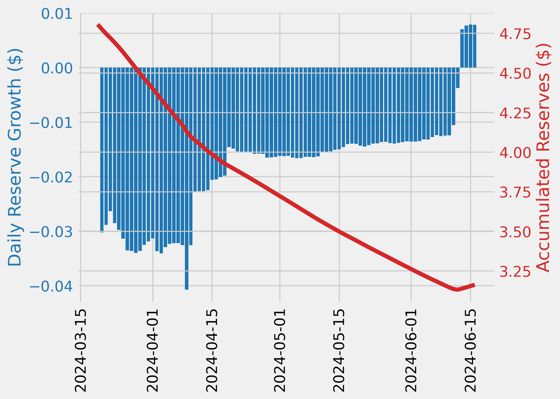 - The minimum WETH reserve growth was -32.16%, and the maximum was -27.86%. The average WETH reserve growth was -30.01%.