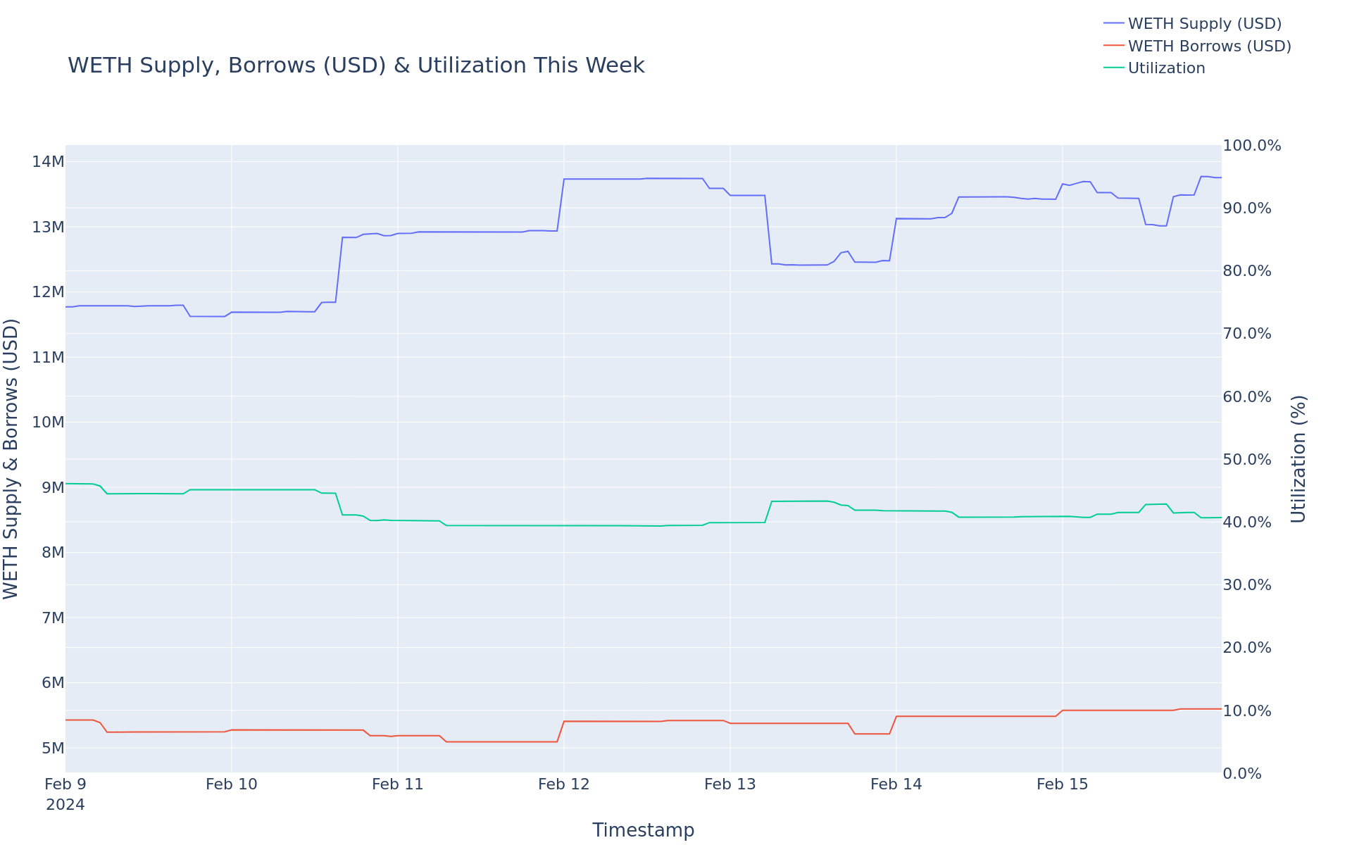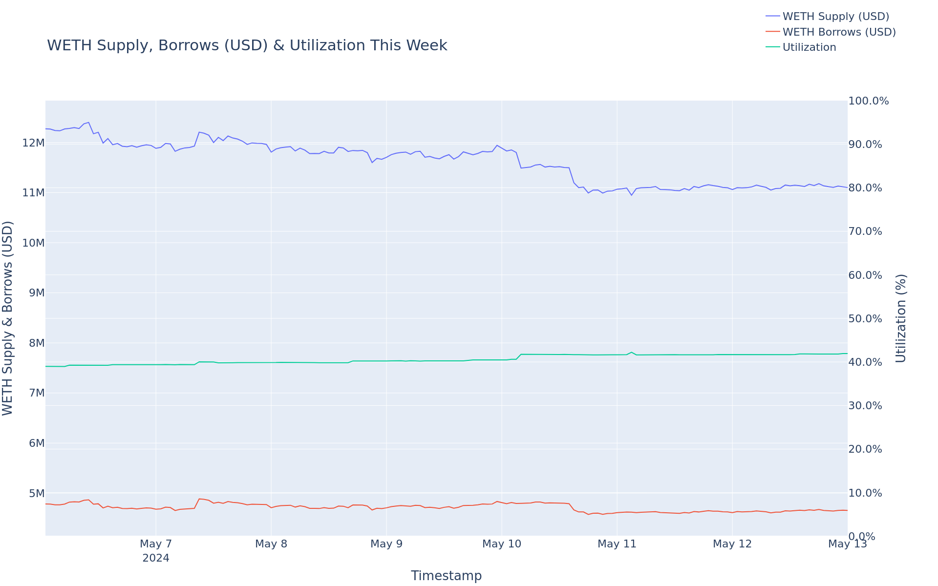 - WETH utilization did not change, remaining at 41.28%.